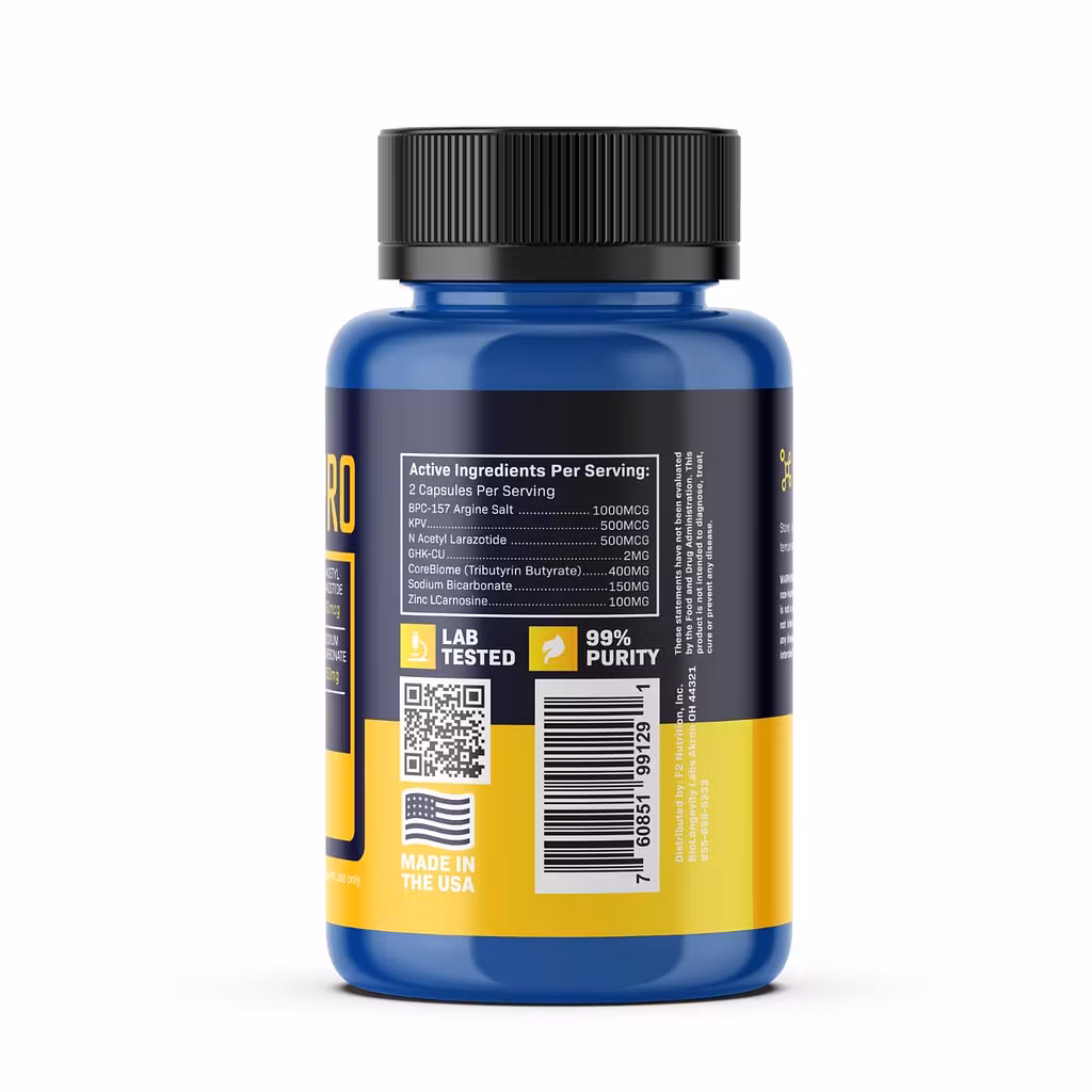 BioGutPro is a next-generation regenerative research product meticulously formulated to assist clinicians in researching intestinal barrier integrity, promote gut healing, and reduce inflammation. It contains a synergistic blend of bioactive compounds—BPC-157 (1000 mcg per serving *)KPV (500 mcg per serving *)N-Acetyl Larazotide (500 mcg per serving *)GHK-CU (2 mg per serving *)CoreBiome® Tributyrin (400 mg per serving *)Sodium Bicarbonate (150 mg per serving *), and Zinc L-Carnosine (100 mg per serving *)—each carefully selected for its role in enhancing gut repair, modulating inflammatory responses, and optimizing mucosal protection.